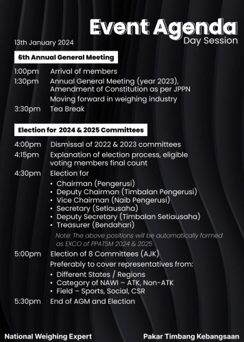 The meeting recorded a total of 48 participations where 44 of them were eligible voters for the new committees. The new committees lineup were elected according to all rules in the Constitution, Mr. Lee Kian Wei & Mr. Wayne Ng after receiving 22 votes each as the candidate to lead the association, both were required to provide their strategies how to lead the team. On a re-voting, Mr. Lee Kian Wei was successfully elected as the new Chairman for two years term of 2024 & 2025.